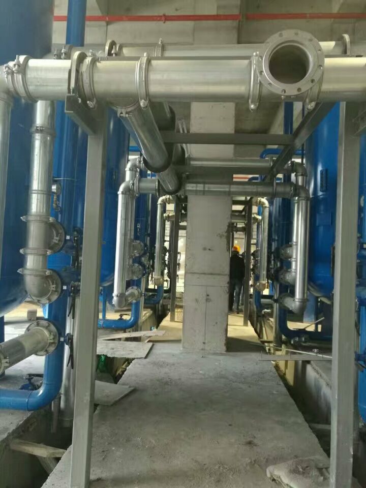 然后進入碳濾罐:φ2.6m*5.90(總高),垂高2.8m,鋼板厚度10mm,級別Q235,內表面襯膠防腐5mm,外表面SA2.5級噴砂除銹至金屬光澤后,噴涂阿克蘇諾貝爾油漆,內部填充果殼活性炭。活性炭過濾器可根據其吸附機理去除原水中的余氯和有機物。